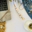 Lanyard - Teacher - Beaded - Polymer Clay - Keychain - 'MIEKA' - Pale Pink, White
